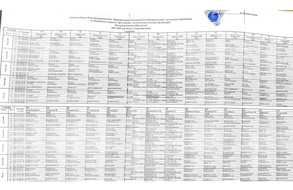 МАД "Ә" сабақ кестесі