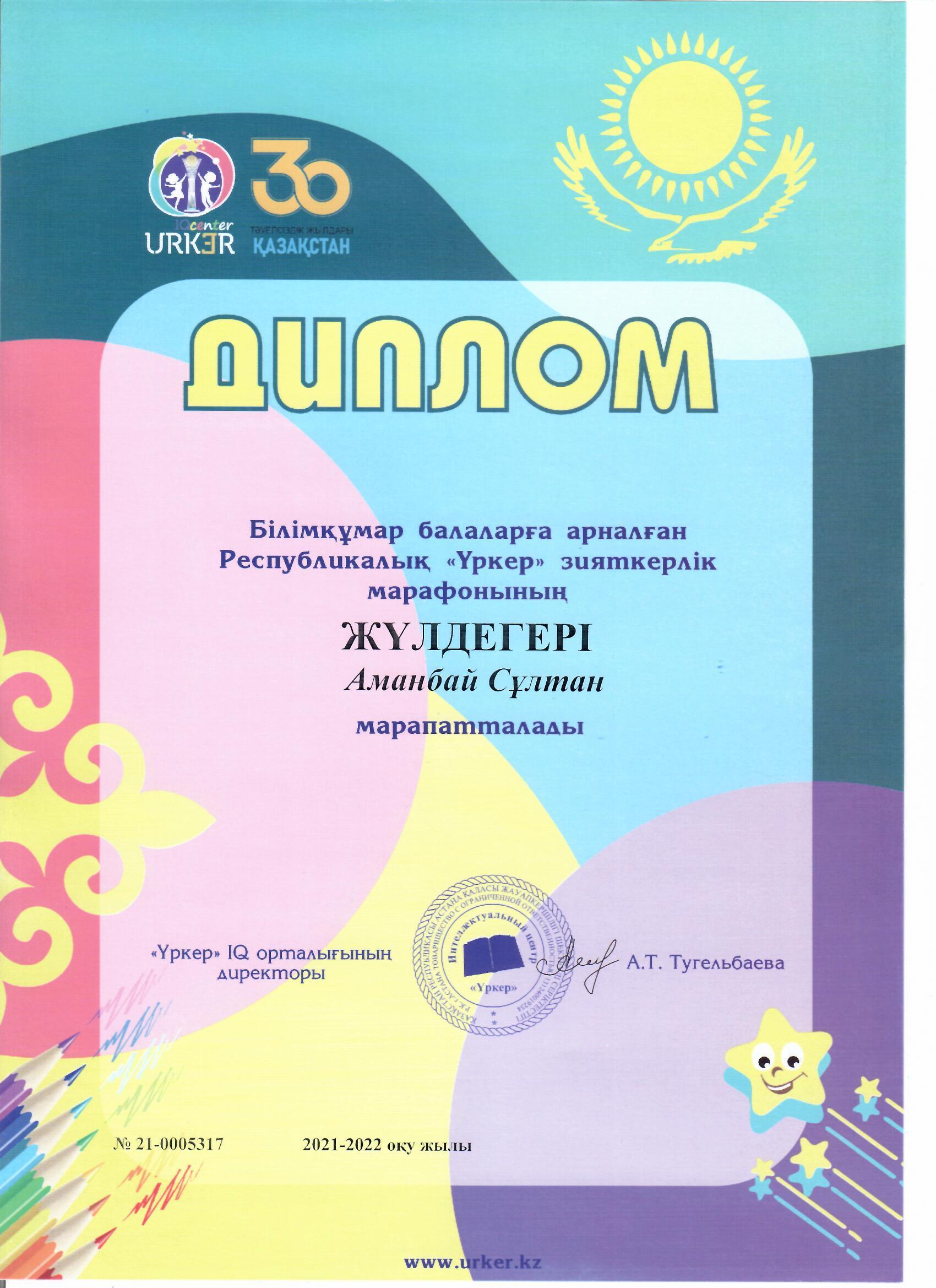 » » » "Үркер" зияткерлік марафоны, "Диплом", Аманбай Сұлтан