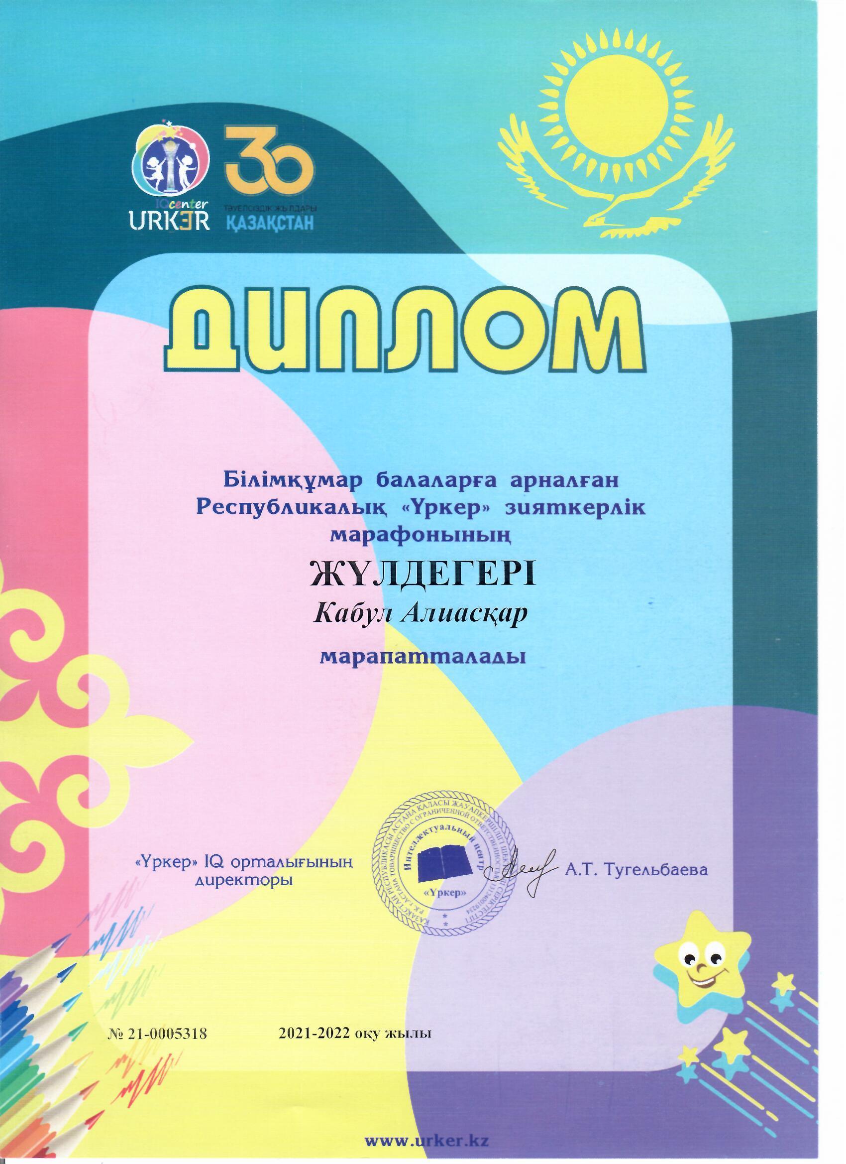 » » » "Үркер" зияткерлік марафоны, "Диплом", Кабул Алиасқар